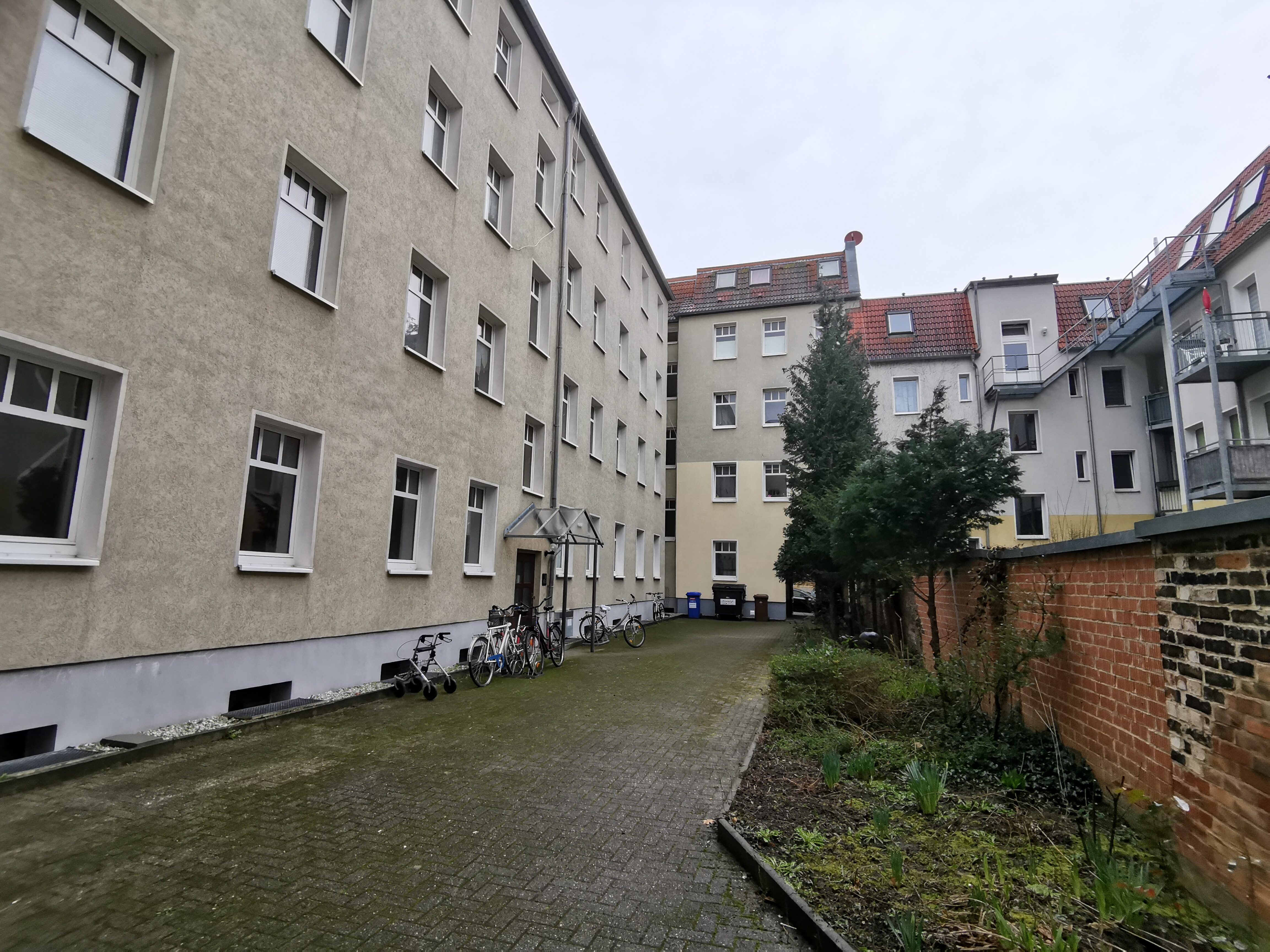 Im Fokus steht das Vorderhaus, dessen neun Wohnungen bereits vor unserem Eigentumserwerb durch einen Brandschaden stark beschädigt wurden. Diese Einheiten werden nun umfassend neu aufgebaut und modernisiert, um den verloren gegangenen Wohnraum hochwertig wiederherzustellen.