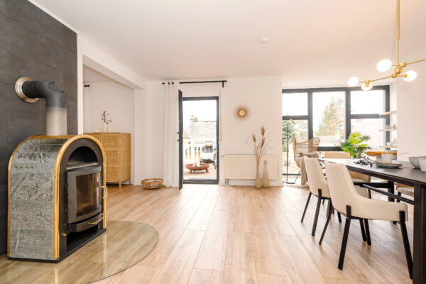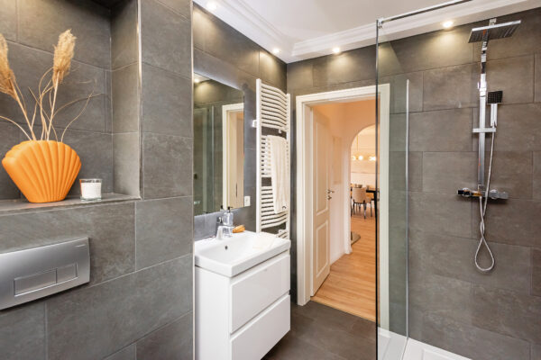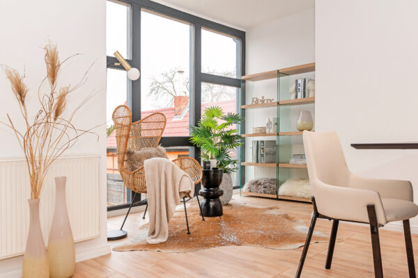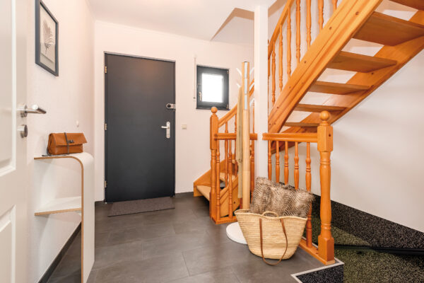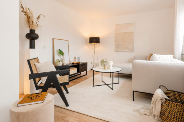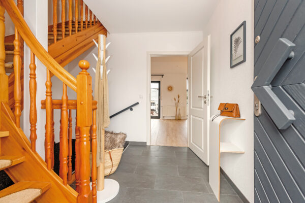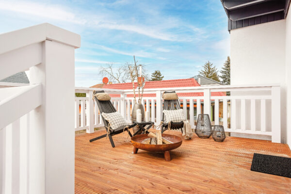 Auch der Außenbereich erhielt eine umfassende Modernisierung: Die Außentreppe und der Balkon sind saniert, die Fassade erneuert und eine neue Holzterrasse errichtet worden. Zusätzlich kamen eine Neugestaltung der Außenanlagen sowie gezielte Grundrissänderungen hinzu, um den Wohnraum an die Bedürfnisse der heutigen Zeit anzupassen.