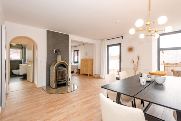 Neben der hochwertigen Sanierung haben wir das Grundstück strategisch geteilt, um Platz für den Bau eines weiteren Einfamilienhauses zu schaffen. Diese durchdachte Maßnahme ermöglichte eine optimale Nutzung der Fläche und bot gleichzeitig einem weiteren Käufer die Chance, sein eigenes Zuhause zu verwirklichen.