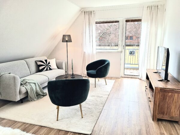 Wände und Decken wurden aufbereitet, Böden erneuert, das Bad modernisiert und der Balkon aufgewertet. Am Ende steht eine stilvolle, bezugsfertige Wohnung, die durch ihre moderne Möblierung und clevere Raumaufteilung überzeugt.